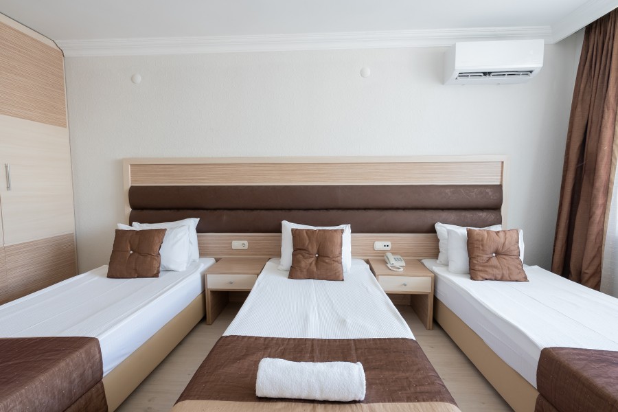 Kalabalık tatillerin keyfi bir başka… 30 m² genişliğe sahip Standart Triple odamız, 3 kişilik aileler veya arkadaş grupları için mükemmel bir konaklama deneyimi sunuyor.
